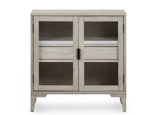 Vintage white oak is finished with a dry hand for the Haiden Cabinet Nightstand's light look, while white Italian marble shelving offers a sophisticated material mix. Single drawer plus spacious interior brings plenty of storage space to the bedside.