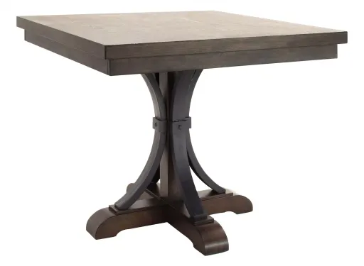 When it comes to the Halloway counter-height dining table, strong lines and eye-catching detail create a transitional look that serves up fine dining for a variety of decorating styles. Distressed, espresso finish and parquet pattern oak veneers showcase this piece's natural beauty, while details like the X-design table top and pedestal base make for a beautiful dining experience. Matching Table Protector