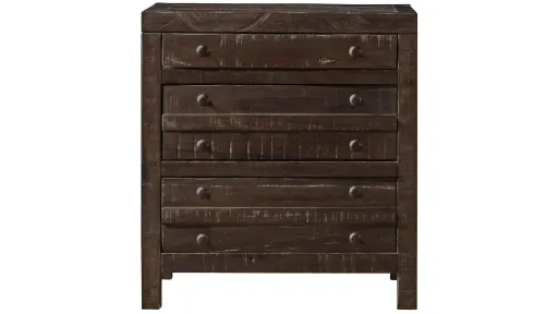 The rough and tumble Hanover nightstand features naturally roughhewn planks with heavy saw marks, pitting and wane. A 9-step finish uses glaze to highlight its wood grain with a light wash to simulate the patina of age. Plus this nightstand has ample storage perfect for all your necessities.