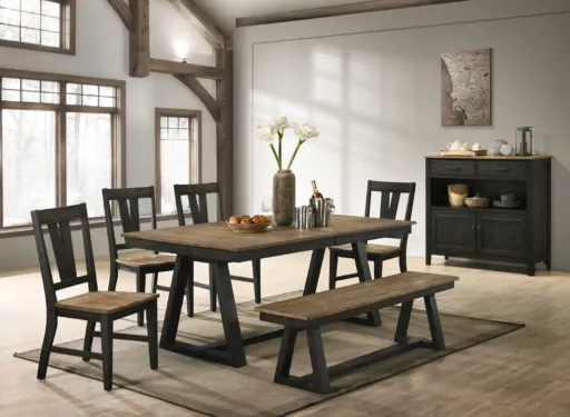 The Harper Dining group has family friendly solid wood construction. It's Transitional style blends simple lines with a striking two-tone finish. The Harper Dining group is tailored to fit in today's modern home with dining configurations designed to fit in small, medium and large spaces.