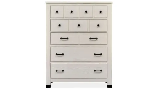 Farmhouse fresh meets industrial chic in the Harper Springs Chest. Black metal ferrules, corner brackets and forged iron hardware bring an industrial modern vibe to the craftsmen-like silhouettes. Harper Springs is crafted of random-width solid Pine for an authentic and casual feel. Whether you aspire to loft living or country living, the Harper Springs Collection will bring your dream home to life.
