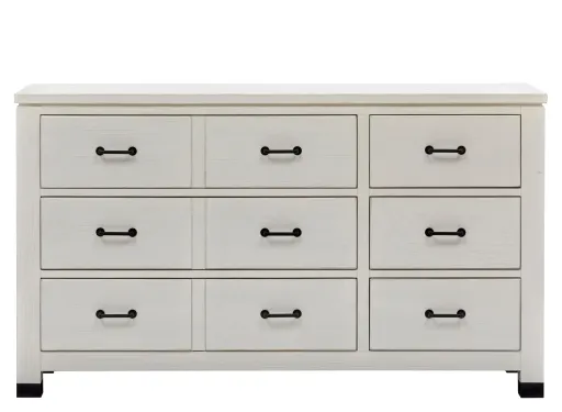 Farmhouse fresh meets industrial chic in the Harper Springs Dresser. Black metal ferrules, corner brackets and forged iron hardware bring an industrial modern vibe to the craftsmen-like silhouettes. Harper Springs is crafted of random-width solid Pine for an authentic and casual feel. Whether you aspire to loft living or country living, the Harper Springs Collection will bring your dream home to life.