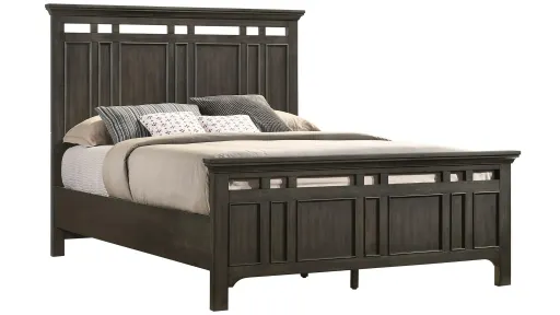 Hawthorne Queen Bed Collection features a solid hardwood construction. This collection features a classic transitional craftsman style with a wire brushed burnished clay finish. The bar-pull hardware on each case piece, have an antique iron finish to enhance this collection with a classic craftsman style.