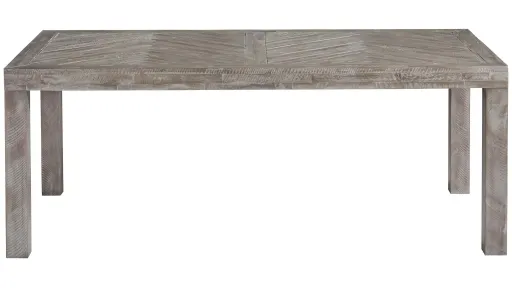 The Herringbone Dining Table appeal comes from the beautifully roughhewn acacia used in its creation. Hand-selected planks of solid wood are carefully sanded, stained and whitewashed for a driftwood appearance that accentuates the active grain and draws out natural knots and markings from the milling process. They are then inlaid over plywood to create a handsome herringbone pattern.