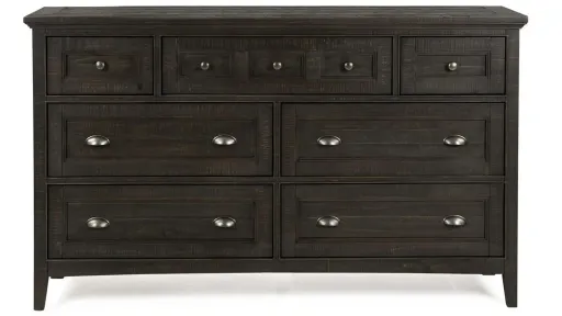 A soft graphite finish on pine veneers and solids creates a relaxed beachy feel in any bedroom with Ivy Ridge Dresser. It lends shaker appeal and provides storage. Straight legs support the straight-lined dresser with raised beaded trim for a touch of cottage style.