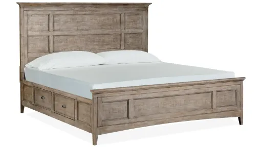 The Ivy Ridge Panel Bed with Storage is finished in dovetail gray with a distressed finish to add an elegant touch and displays the straight inspired legs handsomely. Whether in a second home, a casual city abode or in the suburbs, this bed offers plenty of drawers to stow your togs.