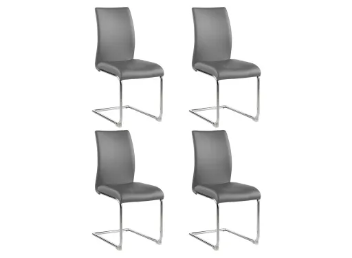 This contour-back Janie side chair set of 4 is upholstered in sleek faux leather, featuring a waterfall edge seat for better leg circulation, set on a chrome cantilever base with anti-tipping glides for safety.