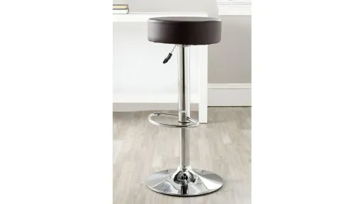 The ample cushion of the brown faux leather and chrome Jon Bar Stool gives you the perfect reason to linger over coffee or cocktails. With 360 degree swivel and adjustable seat height from 25.6" to 31.5", friends will be popping in much more often.