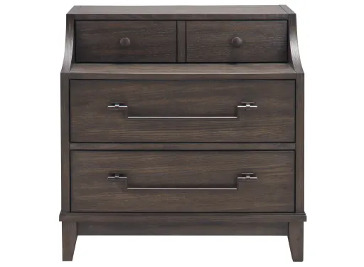 The serene and sophisticated Josephine nightstand is sure to take your bedroom to the next level with its great-looking details. The clean-lined facade features one half-depth drawer atop two full-size drawers for unique character plus surface and storage space. Graceful curves and tapered feet, molding, and two styles of drawer hardware are some of the special touches in this top-notch bedroom collection.