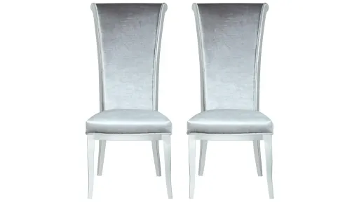 This Joy side chair set of 2 features a thick seat cushion upholstered in fabric, with double stitching on the back and decorative piping decorative piping on a polished stainless steel frame.