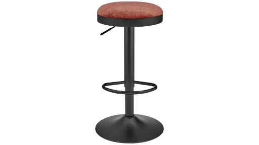 Juno Gaslift Swivel Bar Stool is comfortable and stylish seating for you and your guests with a Modern Industrial-style barstool, offering adjustable height from 25" to 33". Topped with rich coral tone velvet fabric, it includes a convenient footrest surrounding the pedestal steel base. The seat provides a 360-degree swivel and pneumatic height adjustment via a small lever. Some assembly is required.