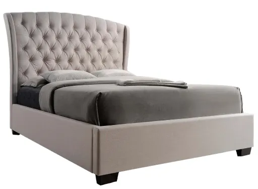 The Kaitlyn button turfed upholstered bed is a chic design in a beautiful oatmeal finish. This is the perfect addition to your room.
