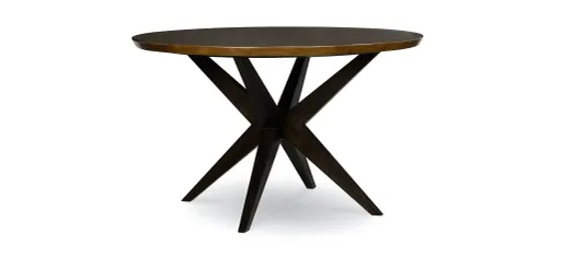 The Kateri Round Pedestal 5-pc. Dining Set has a minimalistic modern contemporary form paired with a wood species whose color variations and natural imperfections embrace the organic overtures present in modern interior design. The contemporary cross hatched legs offer interest to the simplistic finishing of the round top. A color pallet of rich Hazelnut and deep Ebony creates a harmony of tones that is both welcoming and inspiring to the soul.