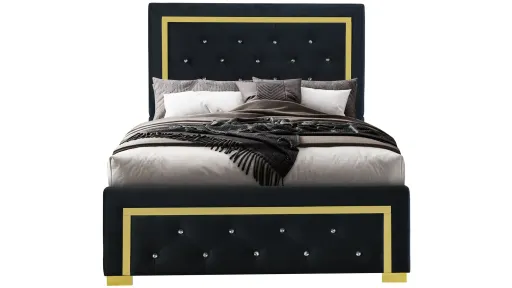 Introducing the Kingdom Bed, a modern and refined bed. This sophisticated collection features a striking black finish, with intricate detailing on the bed headboard and footboard. The coordinating case pieces all sold seperately offer ample storage and display space, enhancing the functionality of this elegant set. Transform your bedroom into a majestic sanctuary with the exquisite Kingdom Black Collection.