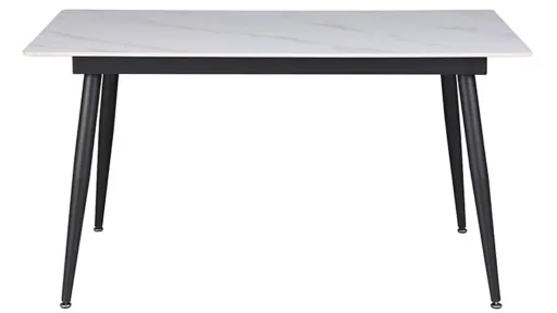 There's no excuse for not hosting your next big occasion with this fantastic contemporary dining table. A rectangular matte white marbleized ceramic top rests atop timeless black steel legs in a matte black finish. The full picture is a sophisticated addition to any dining area that's sure to turn heads.