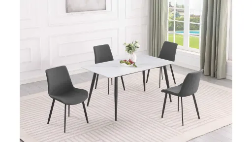These curved back contemporary chairs will add a fantastic touch of design to any space and comfort to match. With gray faux leather upholstery and sleek matte black steel legs, the side chair is sure to move seamlessly to any space you can imagine.