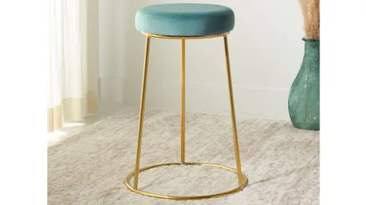 This Kris Counter Stool is at once glamorous and minimalist, giving any interior a touch of dramatic decadence. Its plush seafoam velvet seat is beautifully paired with a sleek open gold frame, elevating the aesthetic of your living space with its artistic use of negative space.