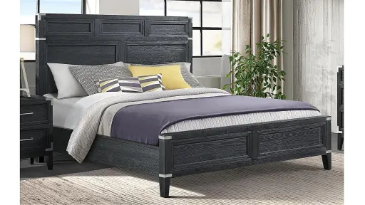 The Laguna King Panel Bed is offered in a wire-brushed multi-step glazed finish, in a complimenting Weathered Steel color. Special features include hardware with an antiqued pewter finish, and decorative metal corner brackets on all items. This collection also offers two unique items, a Floor Mirror and a Storage Bench; perfect items to round out any bedroom revamp!