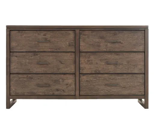 Clean, simple, and effortlessly stylish, the Larkspur Dresser adds beautiful, essential storage and function to a modern bedroom. The streamlined frame and open base create a light, airy look, while the two-tone wood finish and antiqued hardware add a rustic flair that feels grounded and inviting. Six roomy drawers provide plenty of space for clothing and other everyday items.