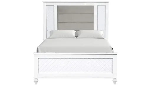 Livorno Bed features Embossed Wood with an X Design and Mirror Trim on the Headboard and Footboard. Upholstering on the Headboard is in Gray Velvet with a Soft Suede Feel. LED Lighting Accents On the Headboard for a Completely Unique Look. A Boxspring or Foundation is Needed and is not Included. Available in King,Queen or Full Size