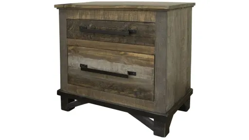 Warm up your bedroom's style with this rustic Loft brown Nightstand. It features the beauty of solid wood, paneled drawer fronts, and curved metal hardware. Plus, you'll love its warm finish, as well as all of the storage space it provides.
