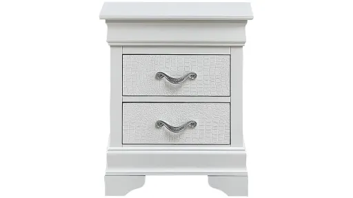 Lorana Nightstand is Finished in Real Wood Veneers over Manufactured and Solid Wood. Drawers Move on Center Supported Metal Guides and Are Dovetailed Front and Back. Corner Blocks are utilized to Support Drawer Bottoms. Additonal Case Pieces are Available as well as Matching Beds