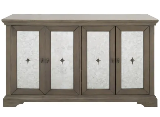 Have splendid gatherings with family and friends around the well-designed Lorient server. From the beautiful oak and poplar finished wood to fine details like antiqued beveled mirror glass door fronts, 12-bottle wine rack, four adjustable shelves, an inlay border design and antique bronze hardware, this server has it all.
