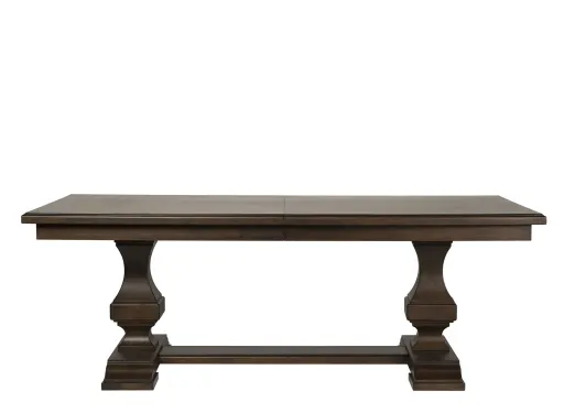 Old World European styling is found in the Lucca double pedestal dining table with leaf. In Italian, Lucca means light. What comes to mind are wine and olive groves in the Hills of Tuscany. Tuscan Rustic design creates a relaxed elegance with enduring style. Elements drawn from Spanish Mediterranean looks and rustic Italian design combine for a grand feel of the past with today's luxurious lifestyle.