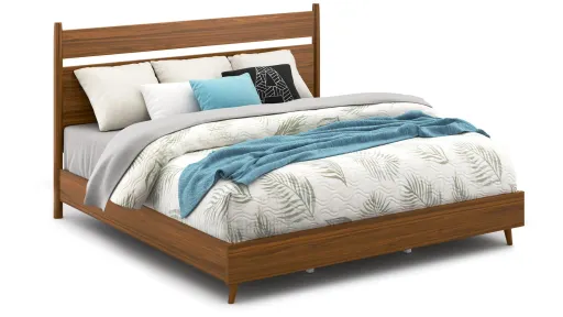 Relax in retro style with the Ludwig Panel Bed, featuring an open wood headboard design for a simple tailored look. Anchored with clean lines and tapered, splayed legs in classic mid-century styling, this bed is accentuated by a warm, walnut finish for a sophisticated look.