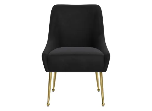 The Madelaine Dining Chair makes a bold statement in any room, whether it is the living room, bedroom, or media room. Featuring stylish gold metal legs and a cushioned back and armrest that you will never want to leave.