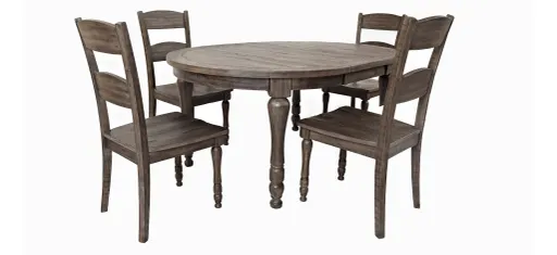 Expertly crafted using solid reclaimed pine, our Madison County Dining Set provides relaxed farmhouse sophistication for creative and comfortable entertaining. This Five-Piece Dining Set includes one dining table that extends to 66" and four matching dining chairs made from solid distressed Pine.