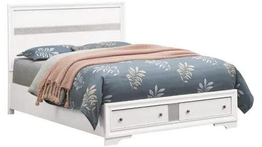 Madrid Storage Bed Features a Distinctive Finish the Looks and Feels Like Real Wood. 2 Drawers are in the Footboard for added Storage. Perfect for Blankets, Extra Pillows and More. Fully Slatted, This Bed Only Requires A Mattress. Matching Case Pieces are Available to Complete Your Bedroom.