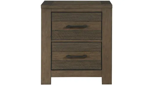 Malea Nightstand emerges, it’s bold look a complement to your home’s unique look. The antique brown finish over birch veneer of the rough-hewn boards that comprise the design of the nightstand are paired with flat black-tone bar hardware, fronting the drawers of the piece, further lending to the rusticated aesthetic of the collection.