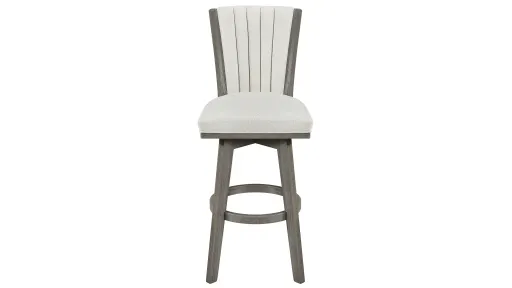 Enjoy the casual elegance of the Maximus swivel barstool as an upgrade to any home bar or kitchen island. Featuring plush, velvety upholstery and a flared back with vertical channel tufting, the Maximus brings comfort and sophistication to any occasion. Whether you're enjoying morning coffee or evening cocktails, this elevated seat adds refinement with ease, and you’ll love the 360-degree swivel for engaging with the scene.