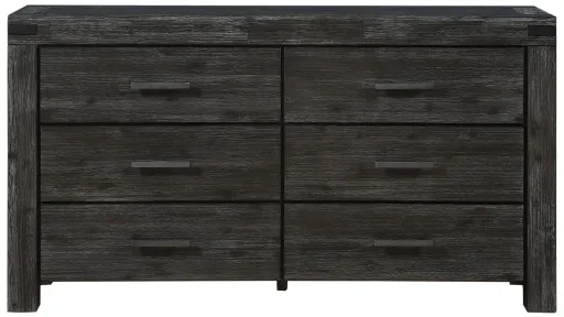 The Meadow Six Drawer Solid Wood Dresser is rugged durability and contemporary styling defined. Crafted from solid Acacia, its sleek lines showcase naturally occurring knot, grain and color variations inherent to the timber. Rustic wire brushing and a lightly glazed Graphite finish provide the perfect balance between modern and rustic.