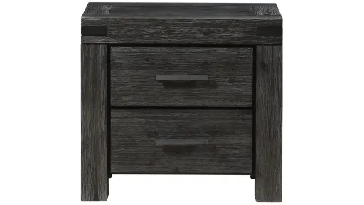 The Meadow Solid Wood Two Drawer Nighstand is rugged durability and contemporary styling defined. Crafted from solid Acacia, its sleek lines showcase naturally occurring knot, grain and color variations inherent to the timber. Rustic wire brushing and a lightly glazed Graphite finish provide the perfect balance between modern and rustic.