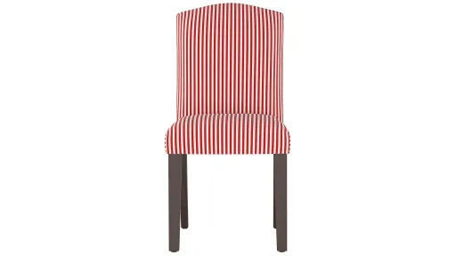 Dip just a toe outside of tradition with this uniquely shaped Merry dining chair, hand upholstered in a rich stripe fabric for a little extra pop and additional appeal. Each chair is made to order and manufactured in Illinois. The tapered legs are real wood and the frame is solid, making assembly quick and easy. These chairs make a fine selection that will hold up well and look superb while providing family and/or guests with a comfortable seating option.