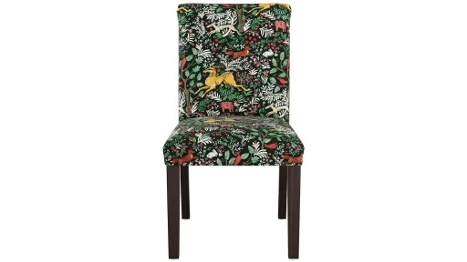 Secure the ideal Merry dining chair for your table when you select this versatile piece. With its hand upholstered conversational fabric, and superior construction, you can feel good about adding it to your overall dining designin multiples! Manufactured in Illinois and made to order, this square chair is graced with tasteful tapered wooden legs that add an air of sophistication. In addition, the armless construction makes it a sensible choice for dining areas both large and small.