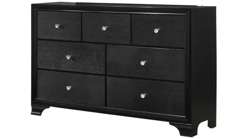 Be on the cutting edge of trends with the Micah Bedroom Dresser. It's perfect to show off your fun side. You'll love the glamorous design with its sleek black finish. This modern 7-drawer dresser has crocodile embossing and beautifully fun faux crystal knobs. Imagine the fun your future holds when you dream in style.