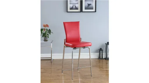 This Mollie stool features motion functionality on the back for increased relaxation, upholstered in quality faux leather with a fashionable accent zipper on the backrest for a sleek look, set on chrome-finished metal legs.