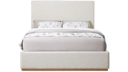 Monaco Bed is perfect for any bedroom. Its frame is crafted from rubber wood and is covered with boucle fabric, giving it an elegant touch. Its contemporary design complements existing modern decor. Use this bed as a bold centerpiece for your bedroom, or pair it with matching furniture to complete your bedroom's contemporary look.