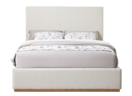 Monaco Bed is perfect for any bedroom. Its frame is crafted from rubber wood and is covered with boucle fabric, giving it an elegant touch. Its contemporary design complements existing modern decor. Use this bed as a bold centerpiece for your bedroom, or pair it with matching furniture to complete your bedroom's contemporary look.