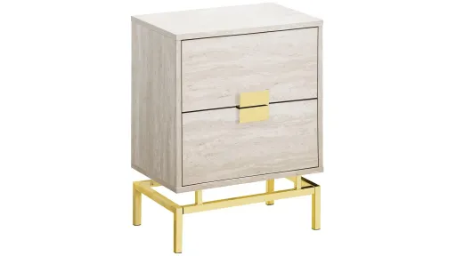 The Monacrh Specialties 2 Drawer Accent Table gives a modern glamorous look to a room. Finished in a stylish laminated gloss on all sides, with two large storage drawers on metal glides accented with chic metal drawer pulls that meet together as one. The bold yet simple chrome metal base elevates this accent table to another dimension. Versatile to use as a nightstand for a modern bedroom or next to a sofa or chair as a side table, this is one statement making accent furniture piece. Assembly is required.