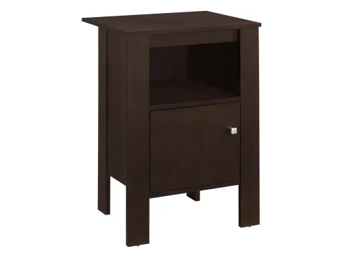 Bring an industrial and contemporary design together with the Monarch Specialties Side Table. In a compact format, it has ample surface space for a few decorations, books or a laptop/tablet thanks to an open shelf and closed cabinet with a beautiful square knob. Make your small home, apartment or condo feel nice and homey and draw some attention to your stylish new side table.