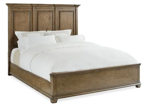 Stunning, stately and stylish, the Montebello Queen Mansion bed includes elements of style such as three shaped and carved headboard panels, a classic crown molding at the top of the headboard and an off-the-floor silhouette with shaped feet. Crafted of solid Alder Wood, the mansion bed is finished in Carob Brown, a nutmeg-colored finish that is hand-planed and softened to create a naturally aged look, then hand rubbed for enhanced softness. Adjustable-height headboard adjusts from 70H to 76H for versatility depending on your space and ceiling height. Includes headboard, footboard and rails.