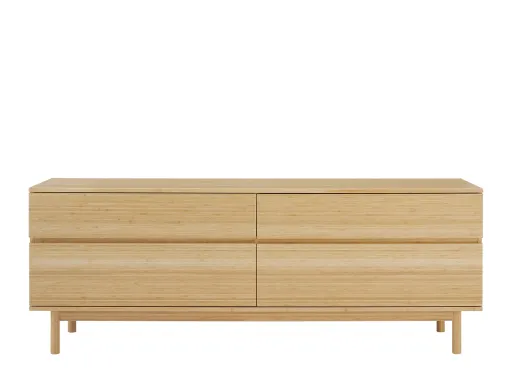 Expertly crafted in solid bamboo, the clean modern lines of the Monterey Double Dresser highlight Wheat's natural array of colors to deliver warm, elegant beauty. Sleek, minimal, and spacious, the Monterey four drawer double dresser features a craftsman-built frame made from solid bamboo, resting on legs that lighten the design. Four wide solid bamboo drawers display expanses of rich bamboo grain uninterrupted by hardware, with each drawer beautifully finished inside and out. Our craftsmanship includes English dovetail joints that provide exceptional quality and strength, and drawers that sit on under-mounted, soft-close glides that softly and gently close every time. Crafted in solid bamboo it is earth friendly, and a sustainable resource.