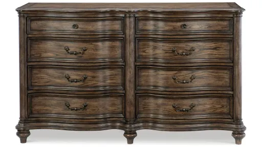 The elegant profile of the Moorewood Park dresser is comprised of classic elements that have been combined to create the perfect addition to your home's traditional dcor. The formal styling of the dresser includes classic elements such routed edges and decorative wood grain. The white oak veneer that graces the dresser is highlighted with a brown oak finish. The traditional case piece provide ample storage within your bedroom is fronted by elegant antiqued brown metal knob as well as button and bale hardware.