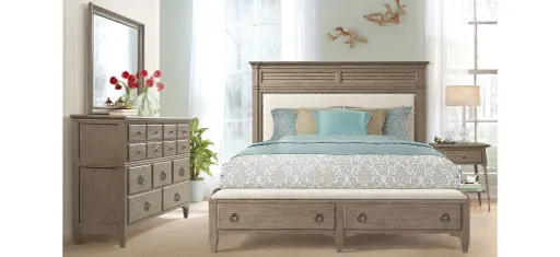Myra Upholstered 4-pc. Bedroom Set w/ Bench and Natural 1-Drawer Nightstand | Furnzy.com - Shop local furniture stores in one place