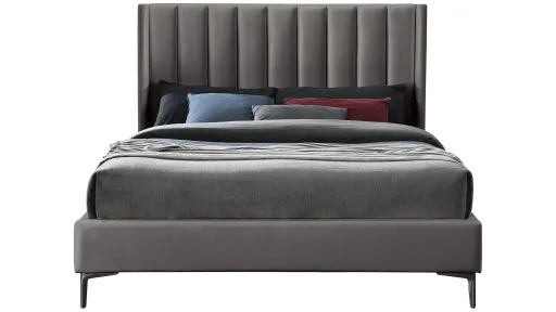 Nadia Bed features an ultra-high headboard that's dramatic and fun and that provides just the right spot for leaning your back against while you watch TV or read. Deep vertical channel tufting and a wing-back design add to the luxe look of this headboard, and soft velvet fabric ensures its visual appeal from all angles. Matte black metal legs finish the bed off and provide clearance below for sweeping.