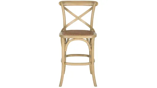 With its willowy frame and iconic cross back inspired by Michael Thonet's classic bistro chair, the Nadine counter stool by Safavieh is ideal in kitchen or great room. Crafted of solid American oak, including the X arch brace, this casual counter stool is finished in weathered oak with a seat of rattan caning.